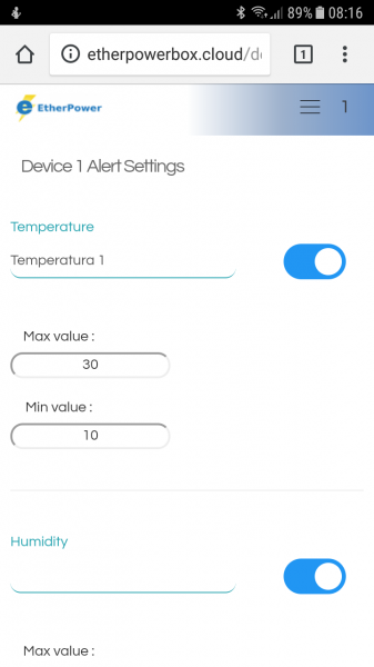 Configuración de límites máximos y mínimos de temperatura.