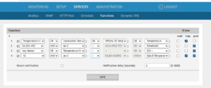 El SUN-2242N permite el monitoreo continuo de variables ambientales (temperatura, humedad, humo, inundación, apertura de puertas, entre otras) y del suministro eléctrico, incorporando además funciones de control.